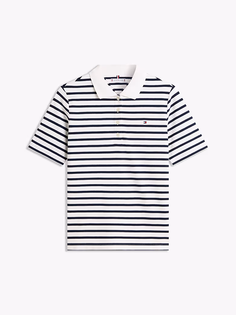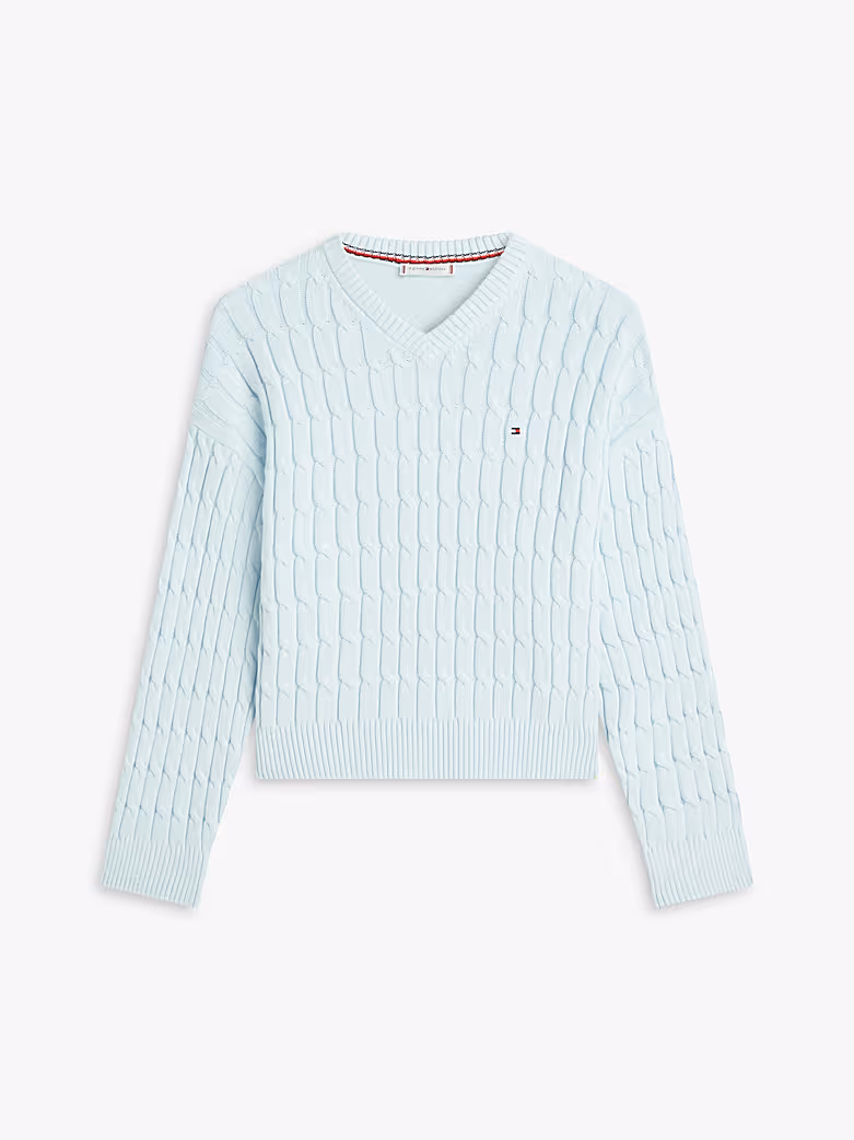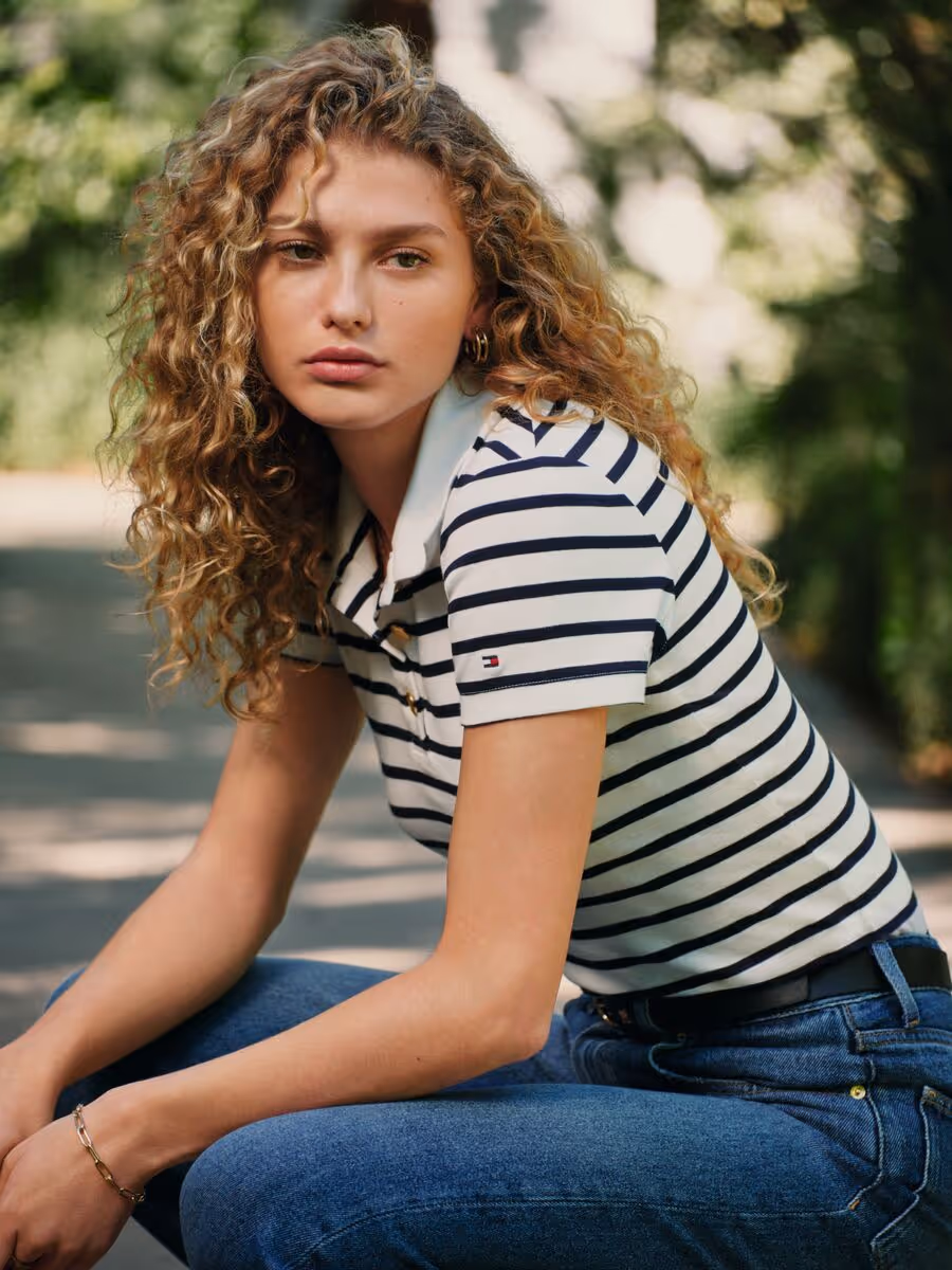 The heart of the womenswear collection is a reworking of icons. The polo shirt, perfected since 1985, is streamlined and elevated in organic cotton stretch piqué, finished with signature flag embroidery and subtle heritage detailing. The cable knit has long been embedded in Tommy Hilfiger’s brand DNA.