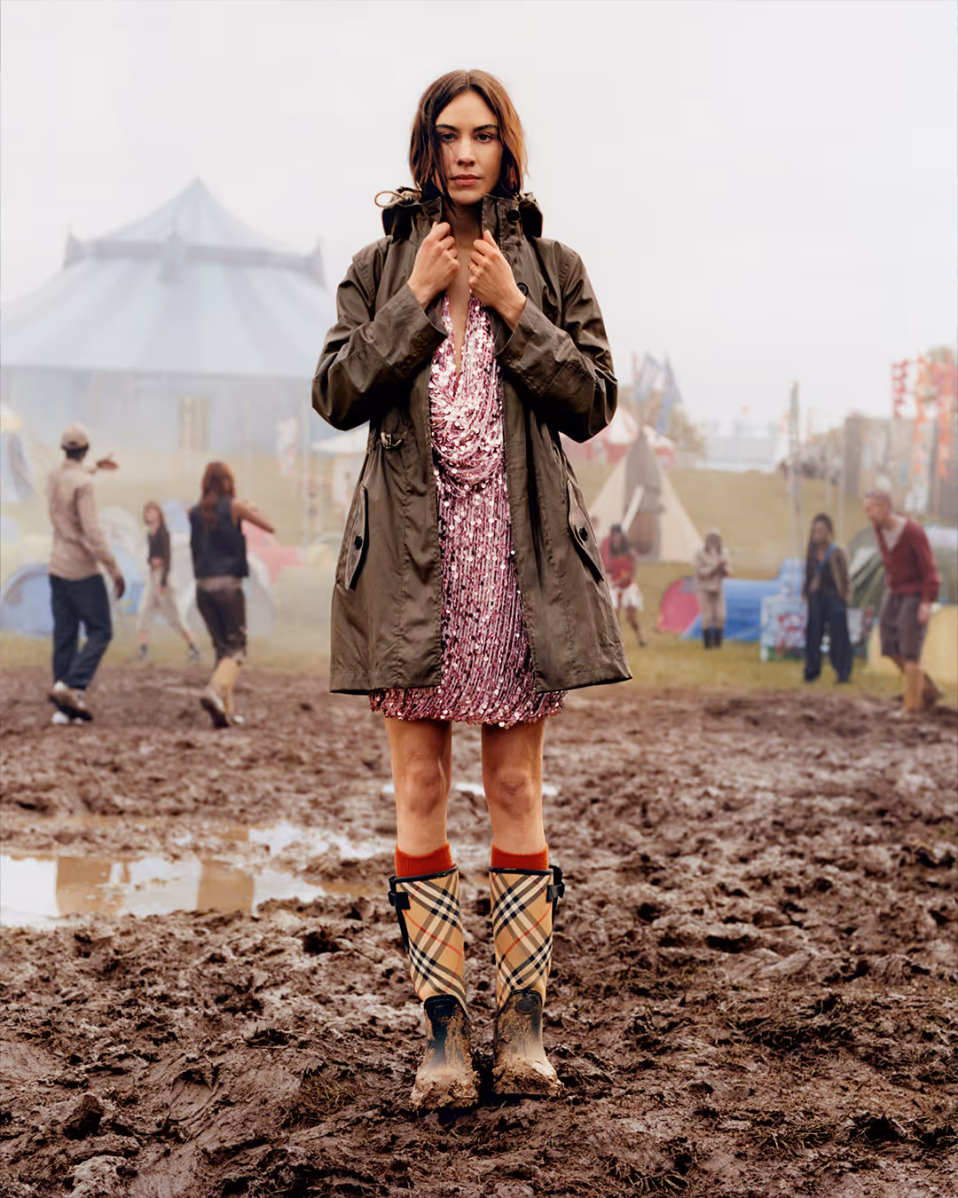 Waxed jackets, Adidas track sets, strappy silk slips, perfectly tousled hair and yesterday's eyeliner. Roll out the red, blue, and white carpet for the Br(it) crowd. Britpop’s sheer meteoric rise in popularity this year may or may not have a certain something to do with the 41 date sold out international tour of a popular dynamic duo. But who are we to say? What we do know is that August saw a 133% increase in the Britpop aesthetic, with search bars and shopping baskets echoing the trend cycle towards late nineties nostalgia. Chaotic and charming in equal measure, the sheer accessibility of the trend only stoked the fires of its popularity. Jumping on the relatability radar, in June the great British brand that is Burberry released a star studded UK festival themed campaign, nova-check muddy wellies and all. Patriotic or progressive, wherever you fall you can’t deny the appeal of cool Britannia.