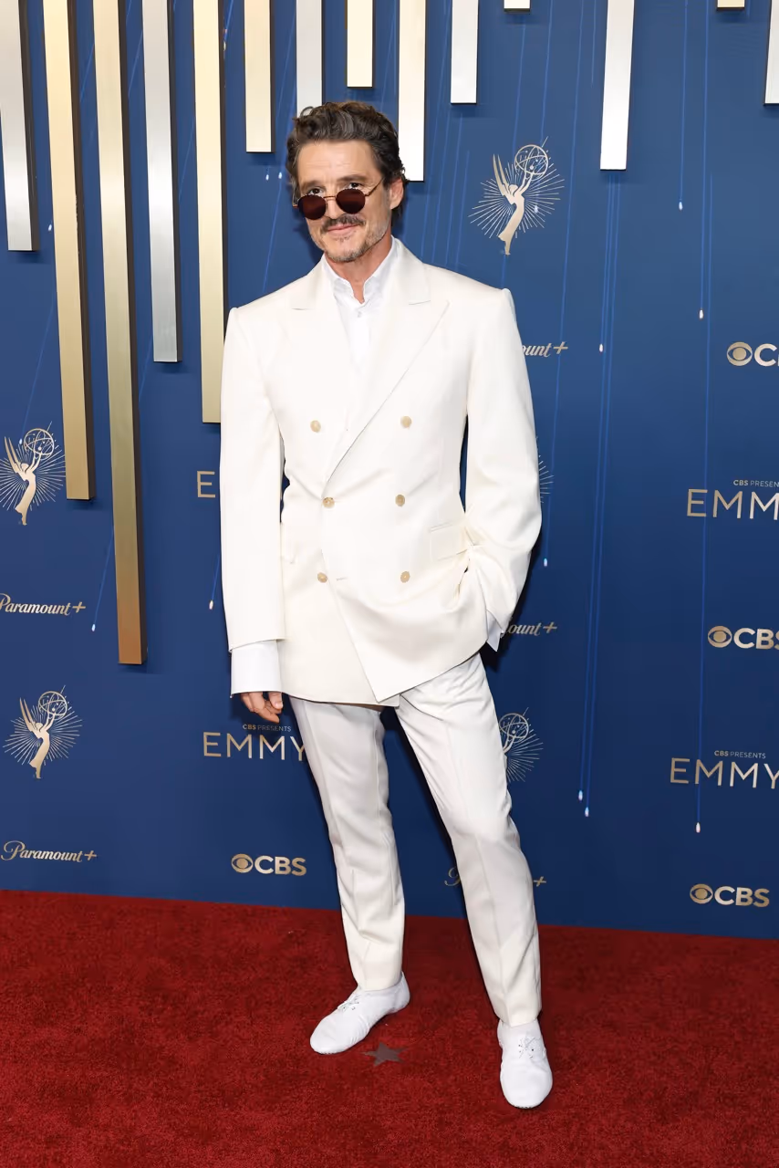 This isn’t power dressing, this is aura dressing. The aura in question radiating right through phone screens and into your wardrobes. After causing a stir at the 2025 Emmy’s in a white double breasted suit, searches for Celine Homme saw a 23% rise. His guest appearance at the Evita premiere sparked a 21% increase in suits, and 11% for ‘quiet luxury’. It’s undeniable, Pedro Pascal’s aura is inspiring, intriguing, and infatuating. With the #pedropascal hashtag on TikTok garnering 761.2k mentions, it begs the question; do we want to be with him or simply be him?