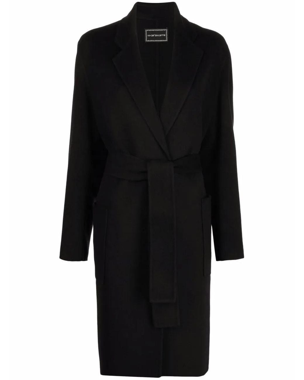 Black wool belted waist classic lapels long sleeves mid-length Size: 42. Gender: Female. Material:Viscose/Wool. Color: black