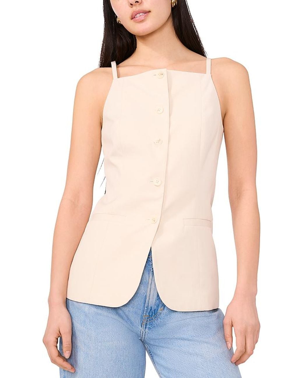 1.state Button Front Vest.Color:Sand.Size:0.Material:67% rayon/28% Tencel™ lyocell/5% linen lining: 100% polyester.Tops.