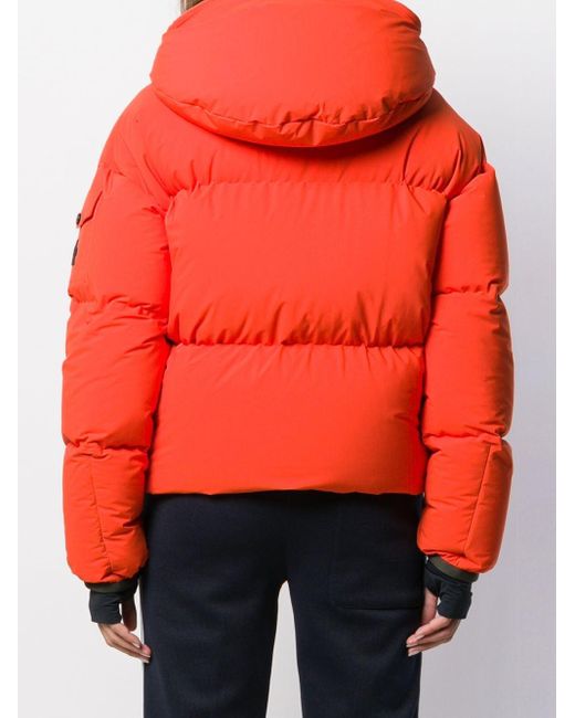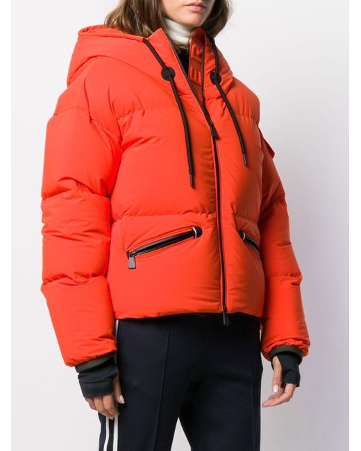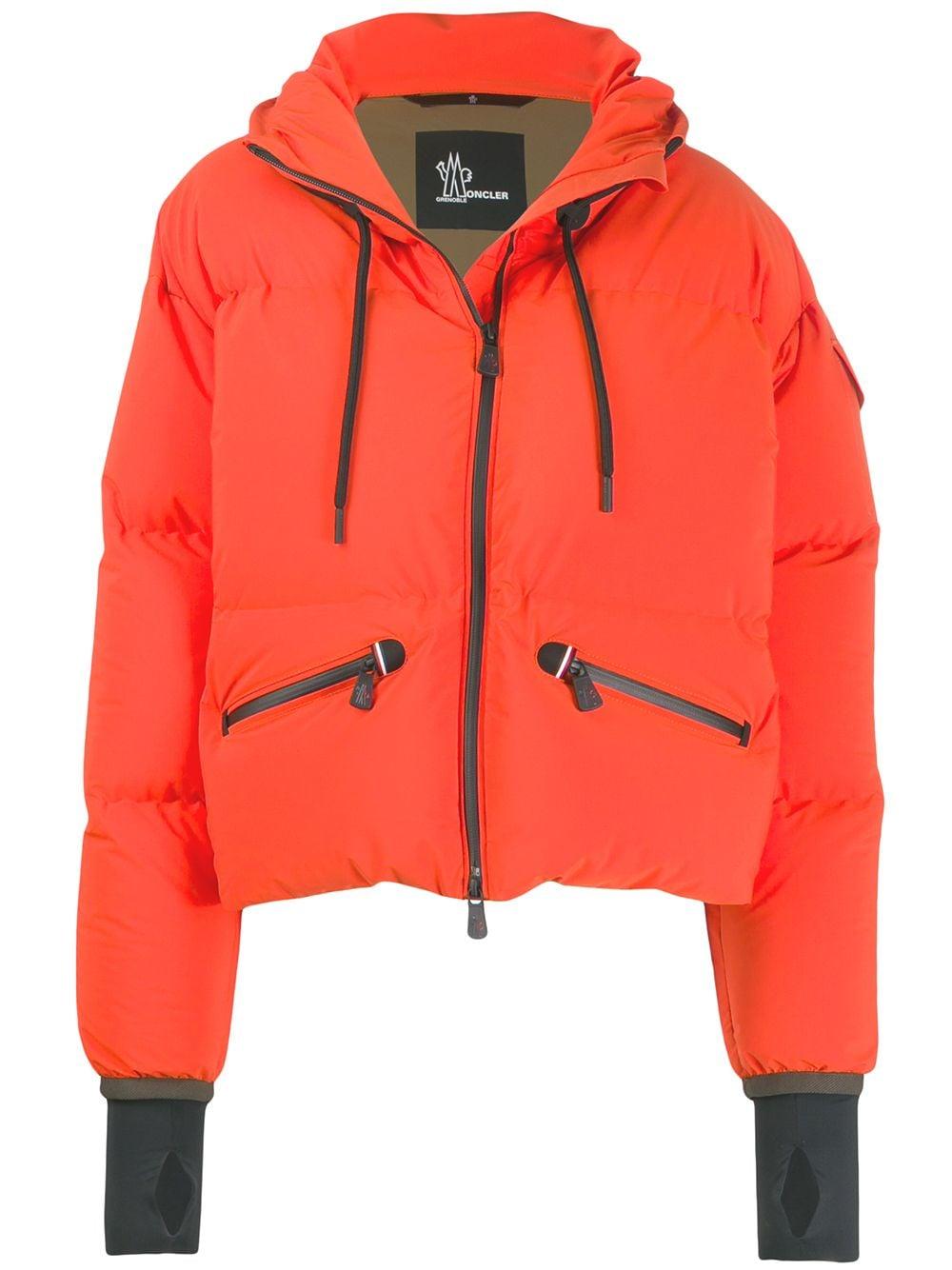 Orange Grenoble airy down puffer jacket from Moncler Grenoble. Material:Spandex/Elastane/Polyamide/Feather Down. Color: orange