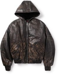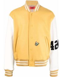 Go to FARFETCHOlive green front zip fastening baseball collar two side button-fastening pockets distressed effect zip details long sleeves ribbed cuffs and hem Size: 46. Gender: Male. Material:Polyester/Polyamide/Polyester. Color: green