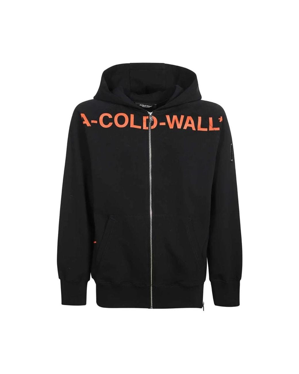 Elevate your streetwear style with this A-Cold-Wall zip-through sweatshirt for men. Featuring a back logo patch, front and back print, and made of 100% Cotton with a touch of Elastane for added comfort. Color: black