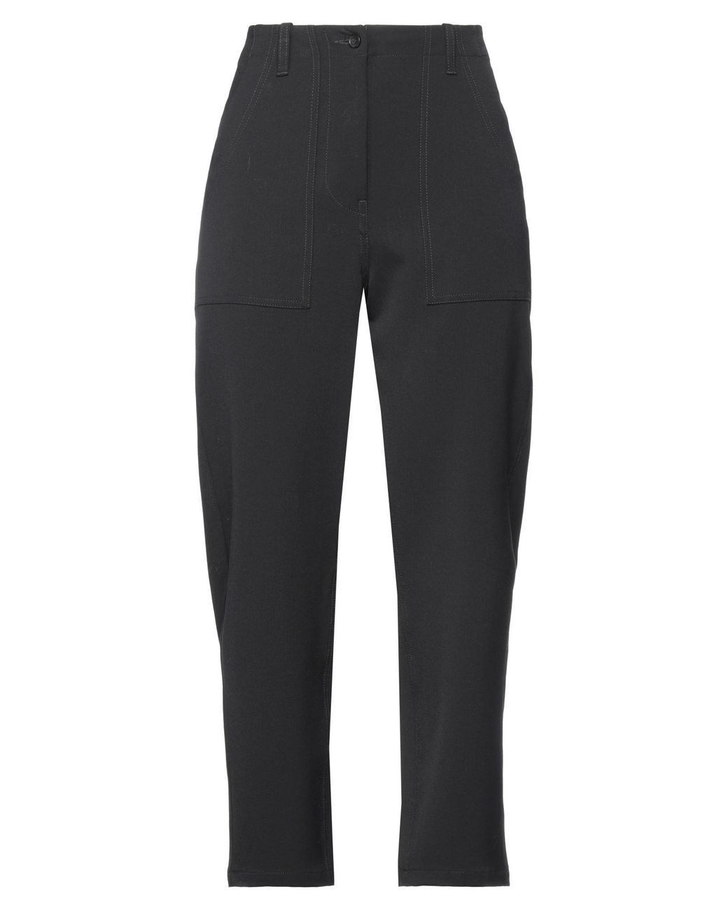 Plain weave, no appliqués, solid color, high waisted, tapered leg, regular fit, zipper closure, multipockets, stretch, pants , Color: Black , Size: 4