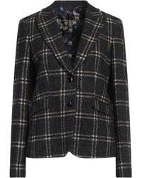 Go to YOOXTweed, no appliqués, checked, lapel collar, long sleeves, buttoned cuffs, fully lined, button fastenings, flap pockets, rear slit, dry clean, do not bleach, do not tumble dry, single-breasted blazer. 44% Viscose, 42% Virgin