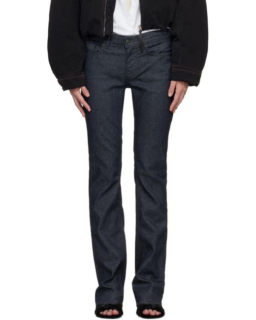 Stretch denim jeans. · Skinny-fit, tapered · High-rise · Belt loops · Five-pocket styling · Zip fly · Logo patch at back waistband · Logo-engraved gunmetal-tone hardware Supplier color: Dark Blue