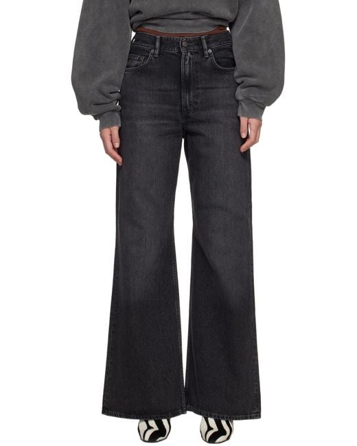 Wide-leg non-stretch denim jeans. · Fading and whiskering throughout · High-rise · Belt loops · Five-pocket styling · Zip fly · Leather logo patch at back waistband · Logo-engraved antiqued copper-tone hardware Supplier color: Black