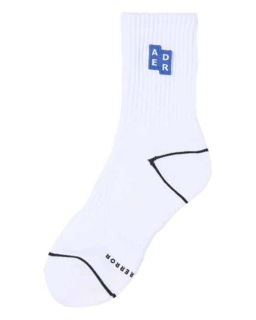 Women's White Embroidered Logo-Patch Socks