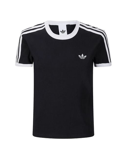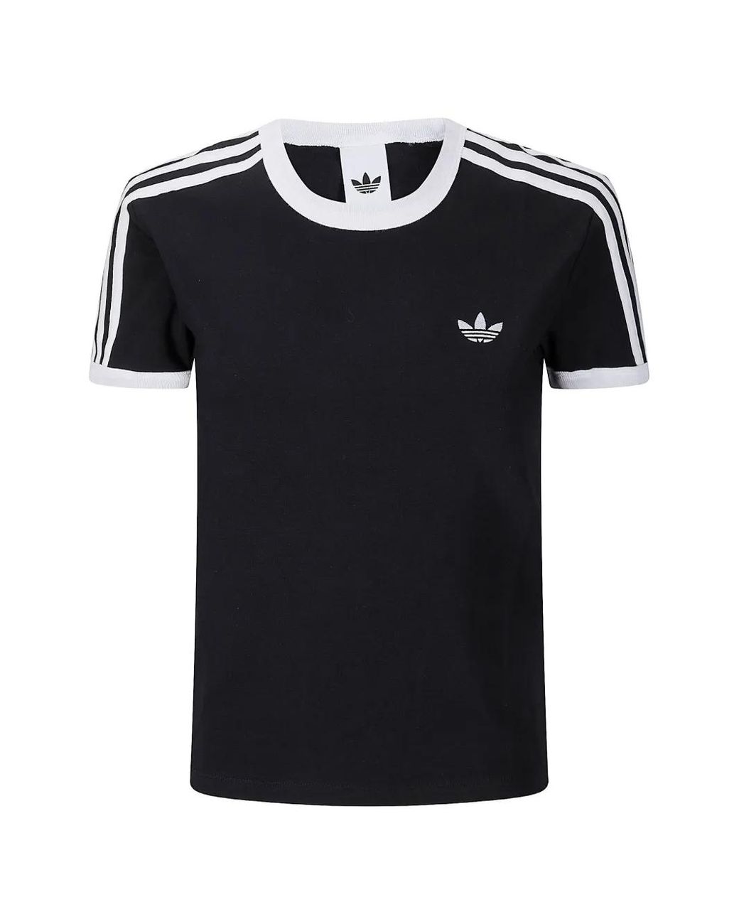 Women's Black T-Shirt À 3 Rayures Et Col Ras Du Cou
