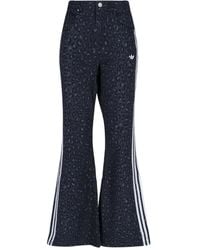 Go to SugarWide Adilenium Adidas blue cotton jeans with distressed wash, belt loops, button and zip closure, five pockets, side Trefoil logo embroidery, iconic side bands, wide leg. Color: blue
