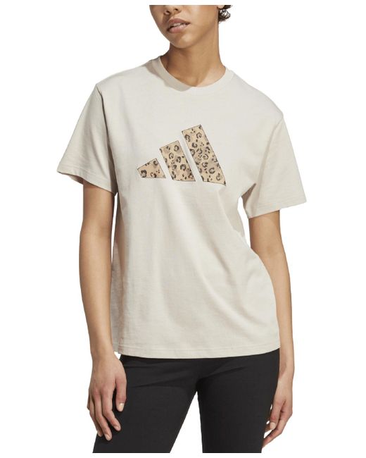 Women's Natural Cotton Animal-print Logo Crewneck T-shirt