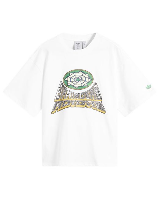 Graphic disruption meets sport heritage. This SS25 tee from Adidas and Brain Dead riffs on classic club merch — reworking the badge into a geometric emblem and layering it with metallic typography. Cut from crisp white cotton, it’s finished with a green Trefoil at the sleeve and a front print that feels part crest, part crystal, part chaos. A subcultural staple in the making. 100% Cotton, Crew Neckline, Trefoil Sleeve Detail, Printed Branding, Style Code: JY8688, Shop All adidas, Shop All Brain Dead, Shop All Men's T-Shirts. Adidas Men's x Brain Dead T-Shirt in Core White, Size X-Small Color: white