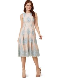 Adrianna Papell Women's Blue Dress Short Sleeve Lace Fit and Flare