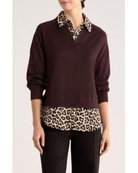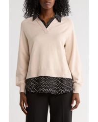 Go to Nordstrom RackSoft meets structure in this twofer sweater featuring raglan sleeves and a charming contrast collar and curved hem. Spread collar Long sleeves 75% viscose, 25% polyester Machine wash, dry flat Imported Color: black
