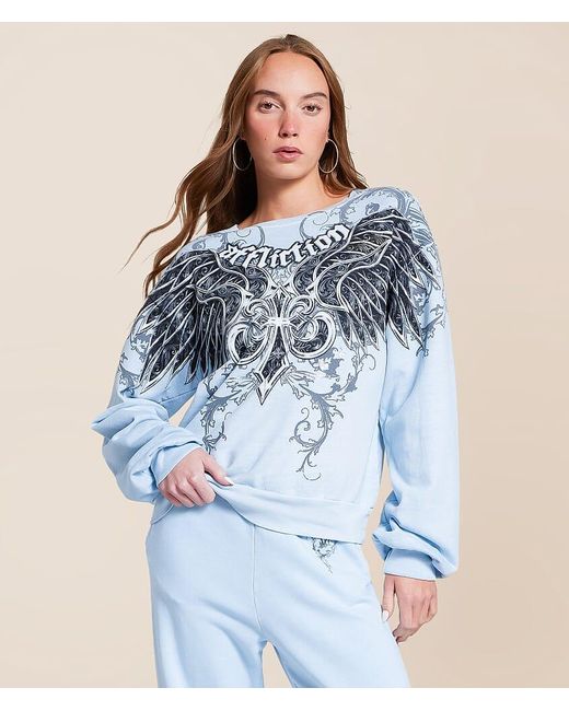 Foiled graphic washed fleece lined pullover Bust measures 40" on size small Body length 23" on size small Color: blue