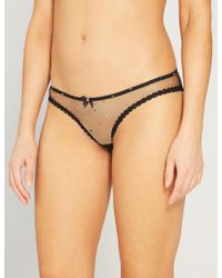 Invest in luxury with the Agent Provocateur Poppie briefs. Crafted with a translucent fine net tulle embroidered with stylish, contrasting multi-tonal dots. Boasting a brief design, this lace trimmed piece is finished with bows to the center. Size selection: American sizingShell: 100% polyamide, Embroidery: 100% polyester. Gusset lining: 100% cottonHand wash only Black/Multi 2. Color: black