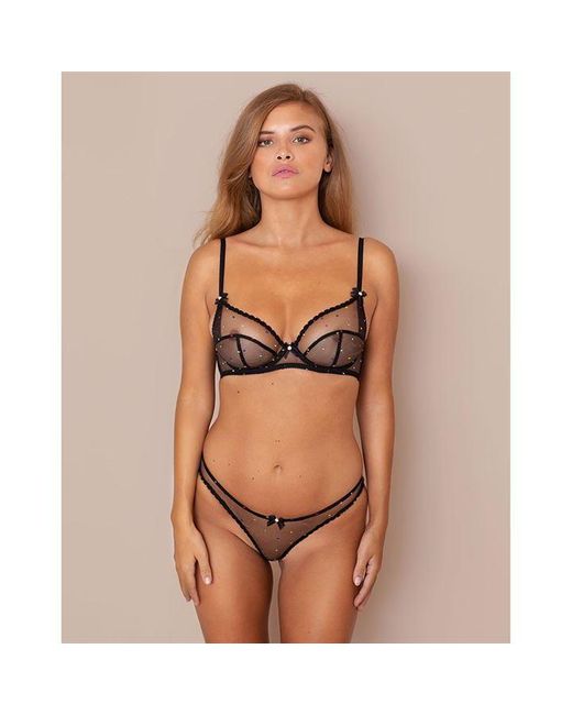 Flirtatious Poppie is made from translucent fine net tulle embroidered with stylish, contrasting pont d'esprit spots in multi colours. This classic-cut black brief is trimmed with black lace at the legline to match the spot embroidery, and topped with a black bow with a pink rosebud at the centre front. Traditional brief shape. Semi-sheer finish. Fabrics & care: Shell: 100% polyamide. Embroidery: 100% polyester. Gusset lining: 100% cotton. Trim: 100% polyamide. Hand wash recommended.