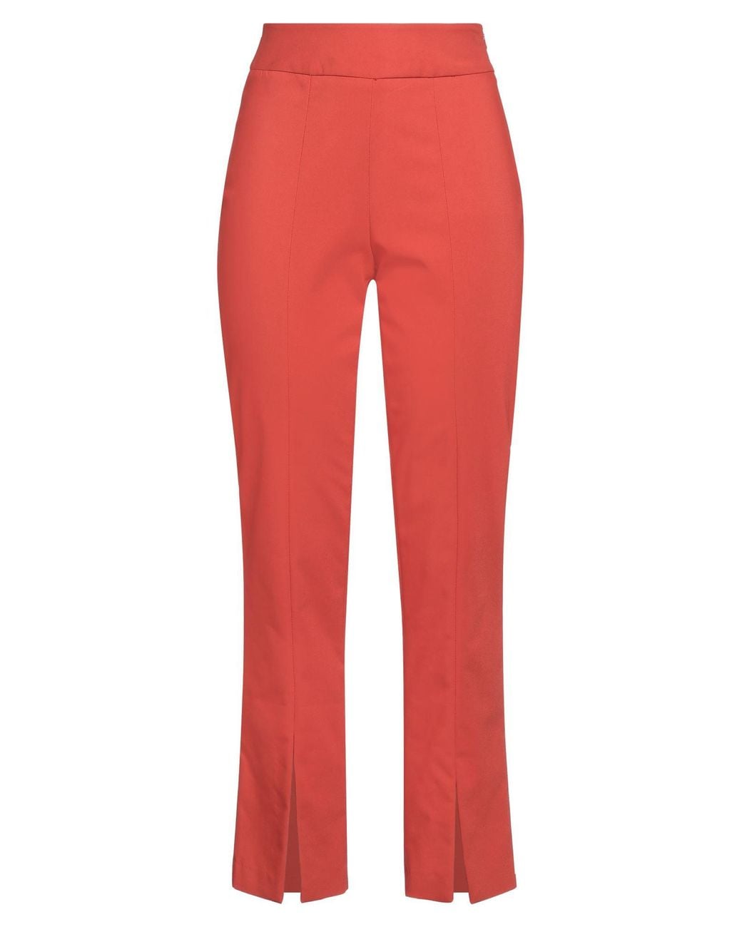 Crepe, no appliqués, solid color, high waisted, regular fit, zipper fastening, without pockets, stretch, hand wash or dry clean, do not bleach, do not tumble dry, straight-leg pants , Color: Rust , Size: 6