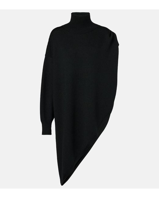 - Turtleneck Asymmetric Cape Hybrid Wool Sweater