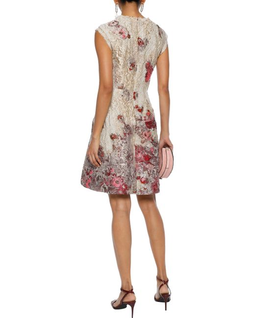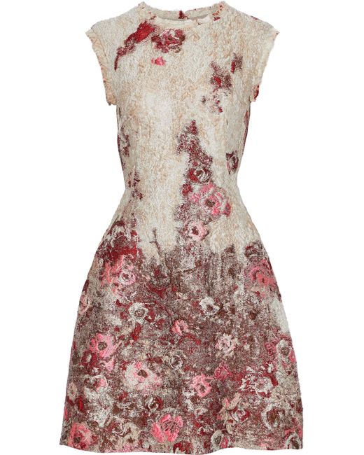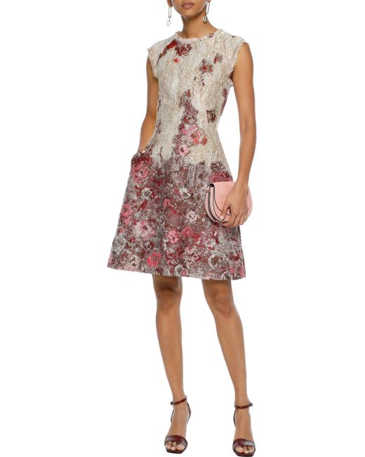 Dress Brocade Side slit pocket Concealed zip fastening along back Fully lined Non-stretchy fabric Mid-weight fabric Dry clean. Imported Flared hem Frayed trims. Polyester 80%, Silk 12%, Polyamide 8%. Color: multicolor