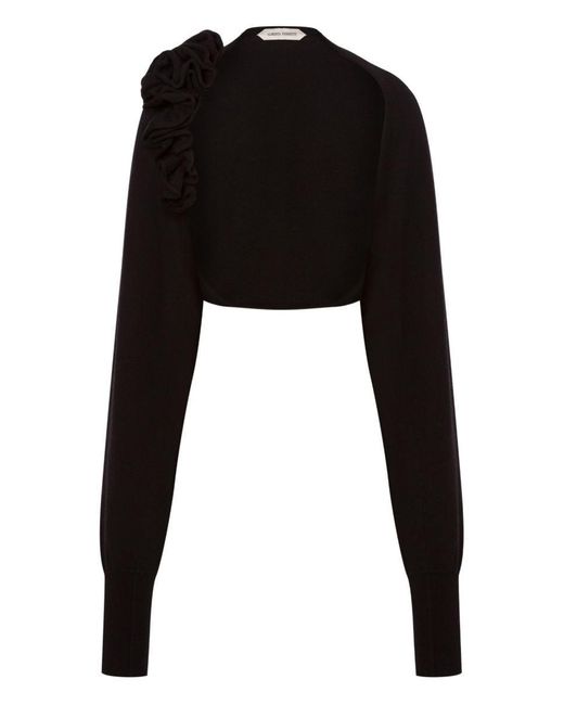 Women's Black Merino Wool, Silk And Cashmere Bolero With Floral Detail