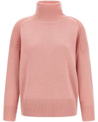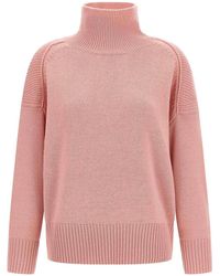 Go to ItalistKnitted cashmere sweater with high neck, long cuffed sleeves and dropped shoulders. Composition: 100% cashmere Color: brown