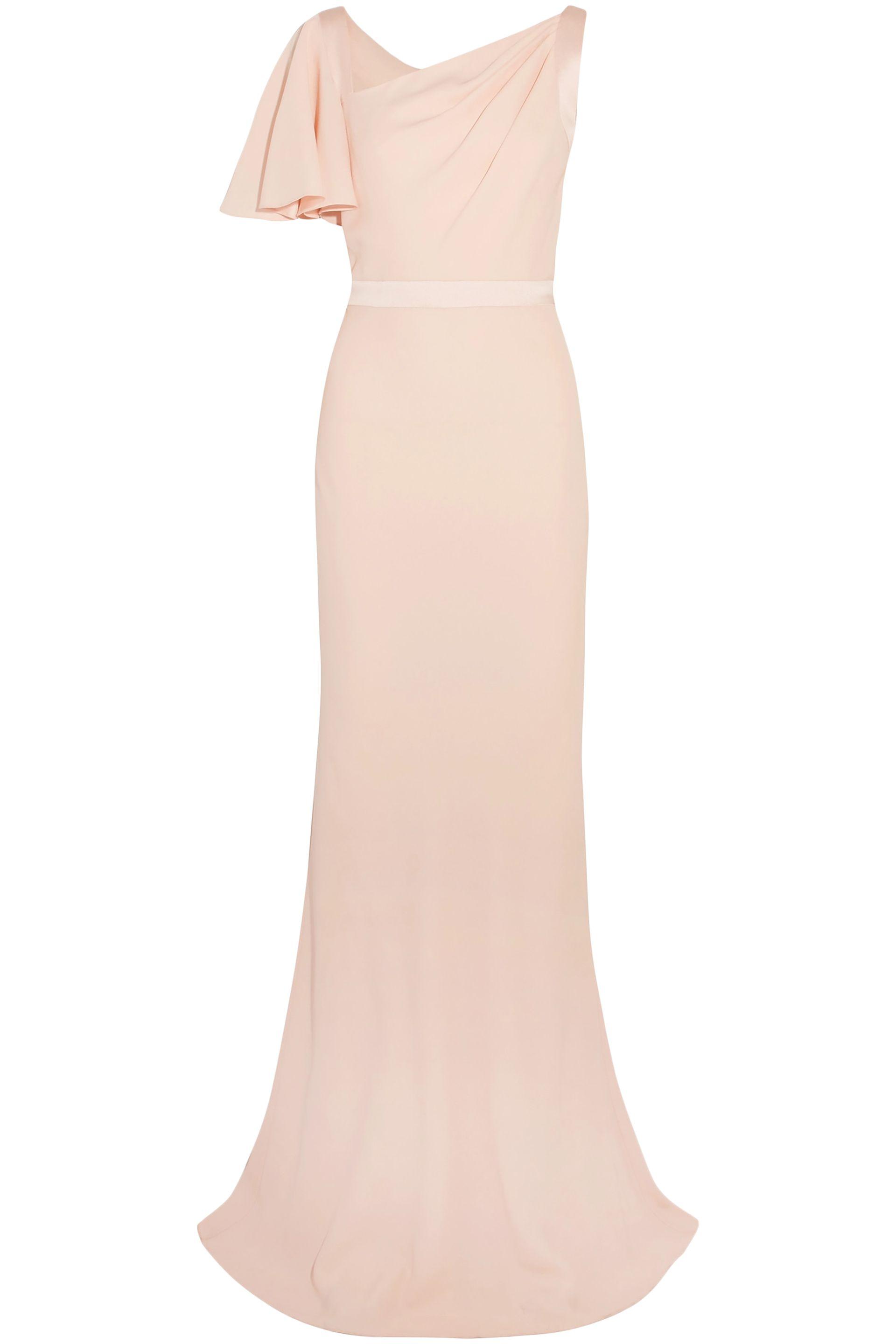 Gown Crepe de chine Satin trims Gathered Concealed hook and zip fastening at side Fully lined Fluted hem Non-stretchy fabric Mid-weight fabric Delicate dry clean. Made in Italy. Viscose 61%, Acetate 39%. Color: multicolor