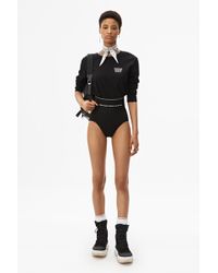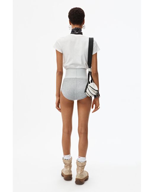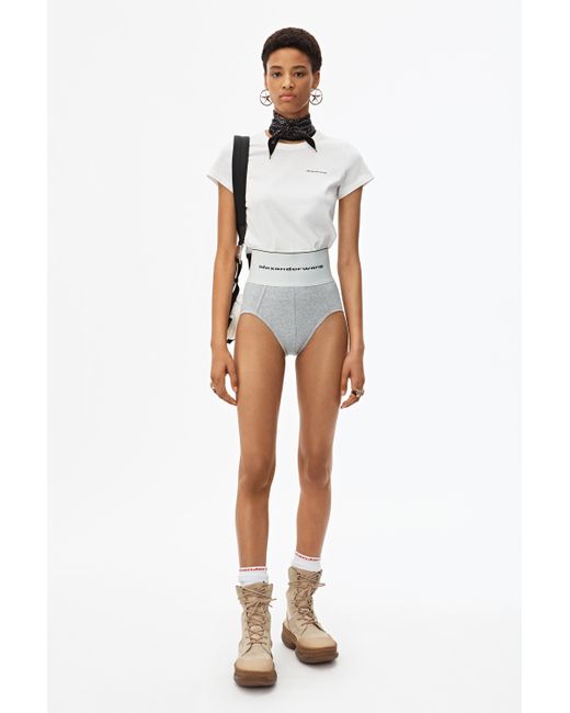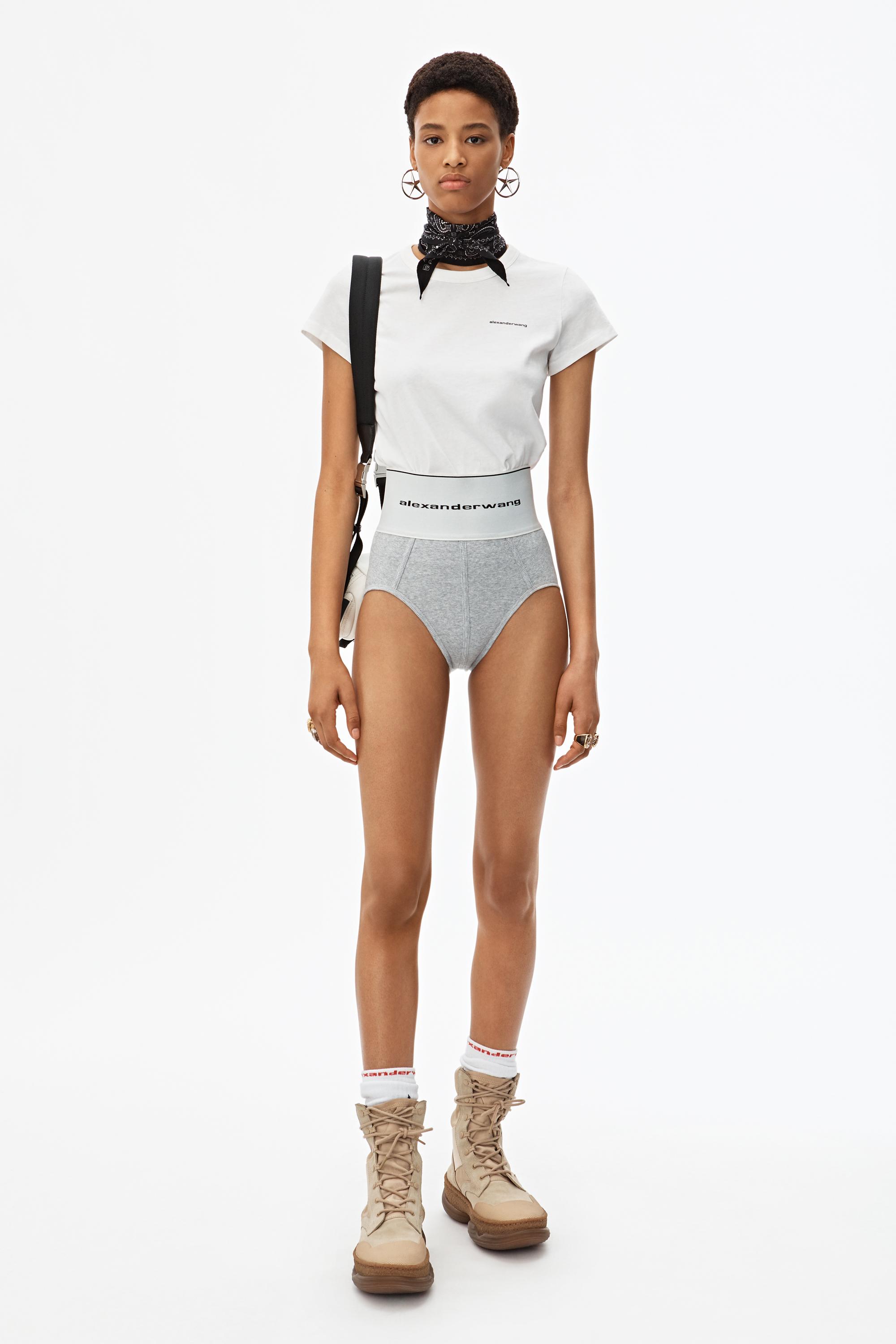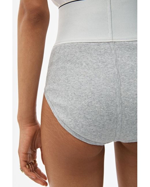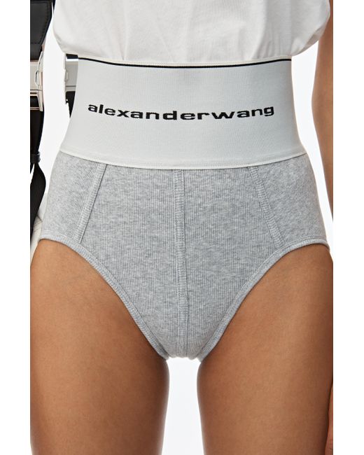 High-waisted ribbed jersey underwear with style lines to accentuate the contours of the body. Wide logo elastic at waist. Body: 98% Cotton 2% elastane. Lining: 86% Cotton 14% elastane. Model is 5'10 and wears size S. Hand wash cold. Do not bleach. Do not tumble dry. Lay flat to dry. Do not iron. Professional dry clean. Color: gray