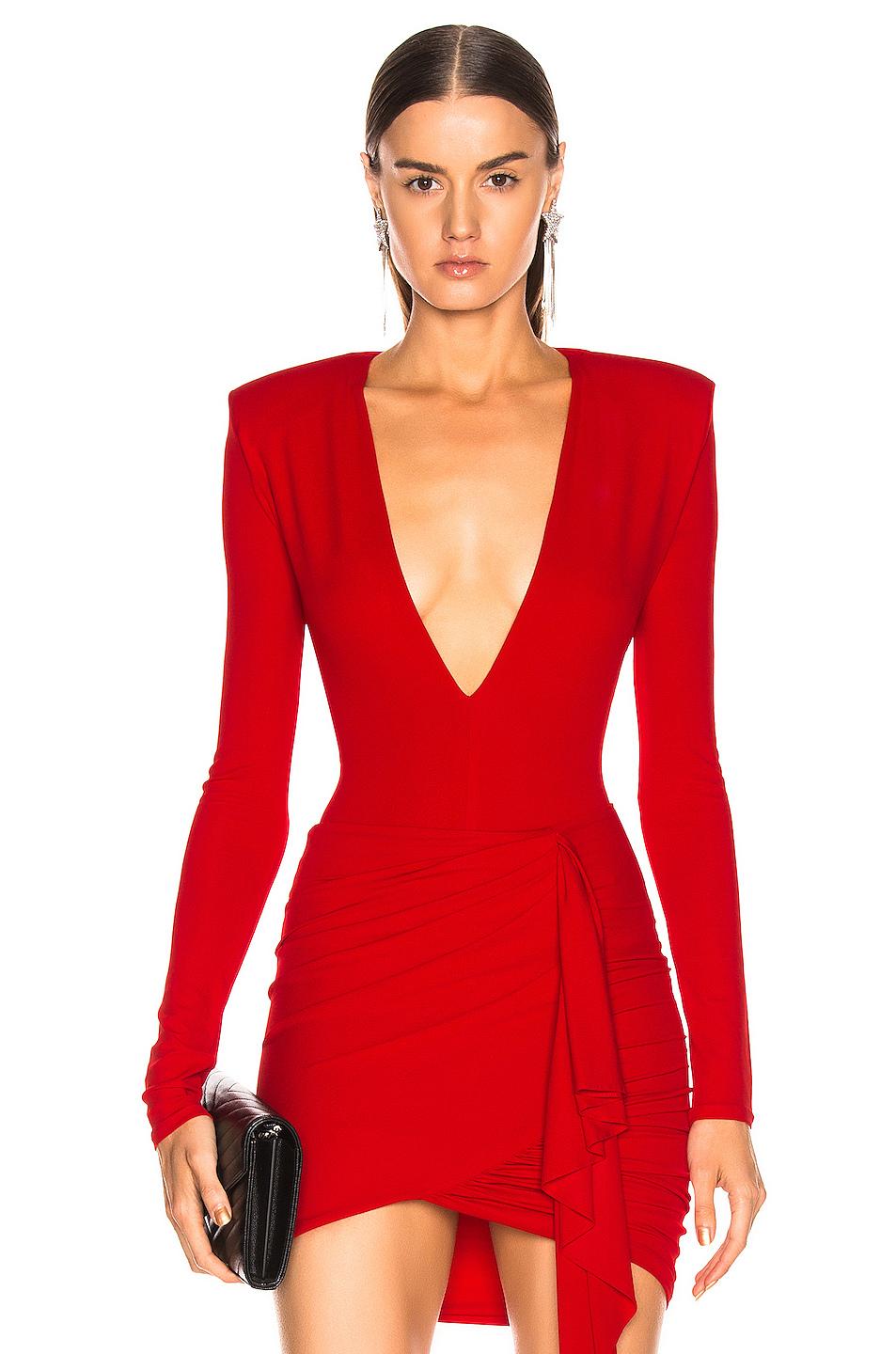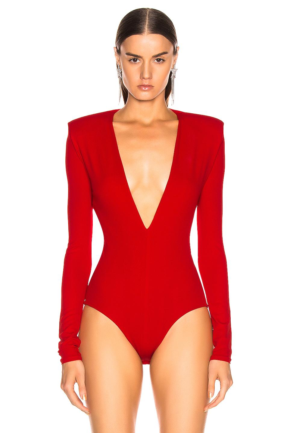 Alexandre Vauthier Women's Red Plunging Bodysuit