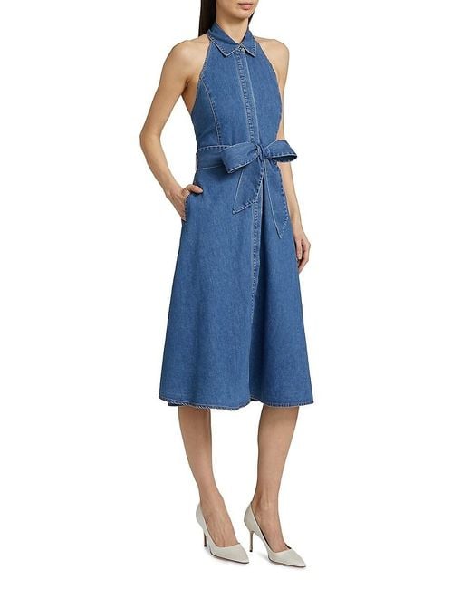 Women's Blue Chassidy Chambray Halterneck Midi-Shirtdress