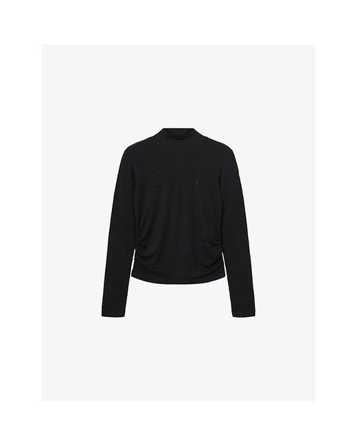 Women's Black Rina Roll-Neck Long-Sleeve Stretch-Woven Top