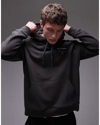 Go to ASOSHoodies & Sweatshirts by AllSaints Layer up Drawstring hood Pouch pocket Print to chest and back Regular fit Color: blue