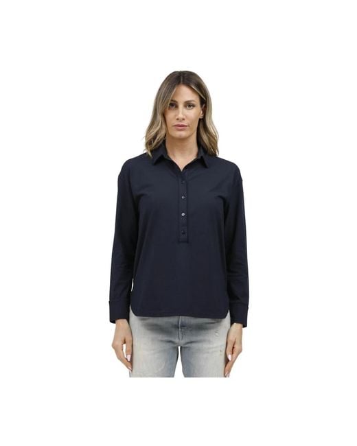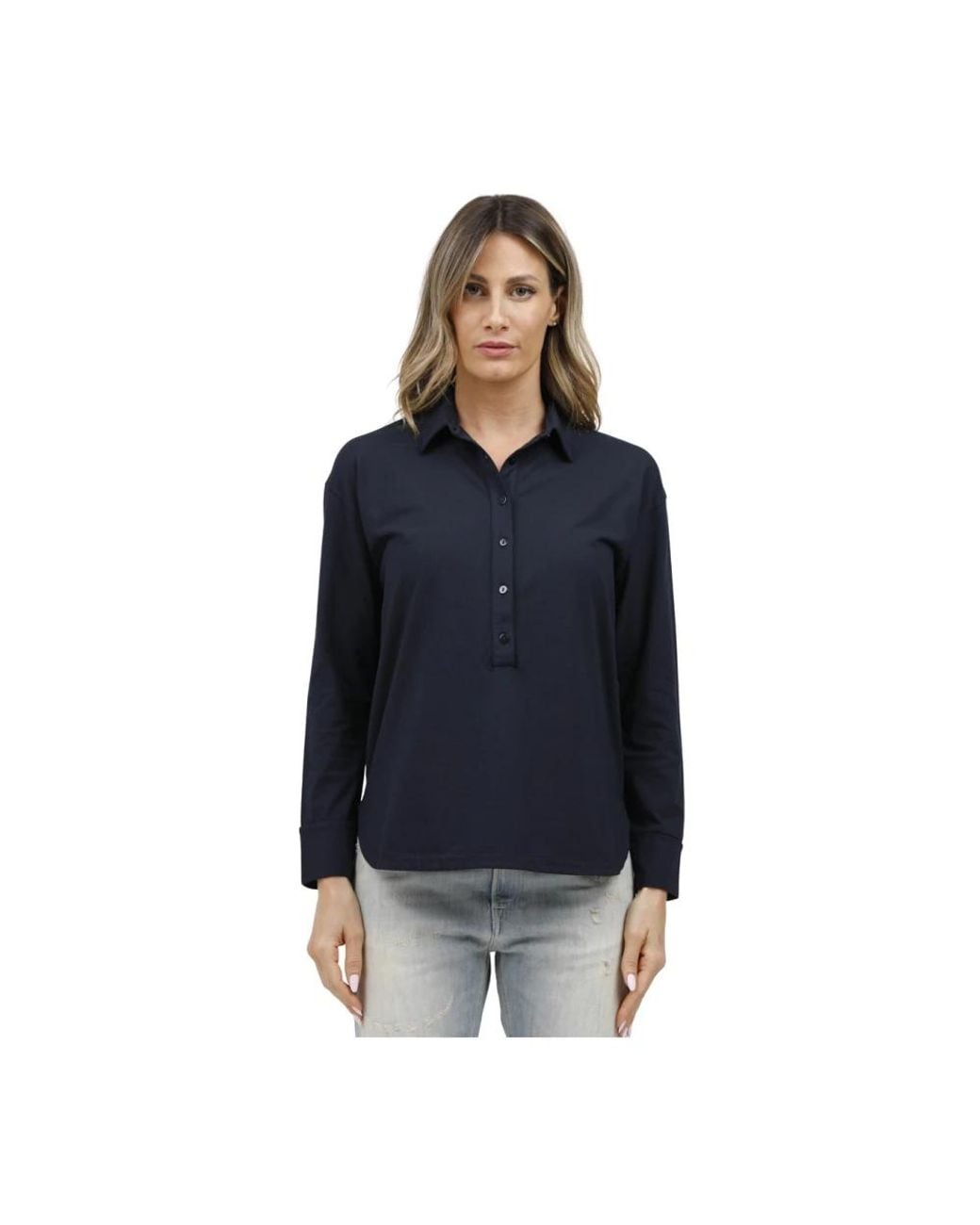 Stay stylish with this cotton ice long-sleeved polo by Alpha Studio, perfect for women. Color: blue