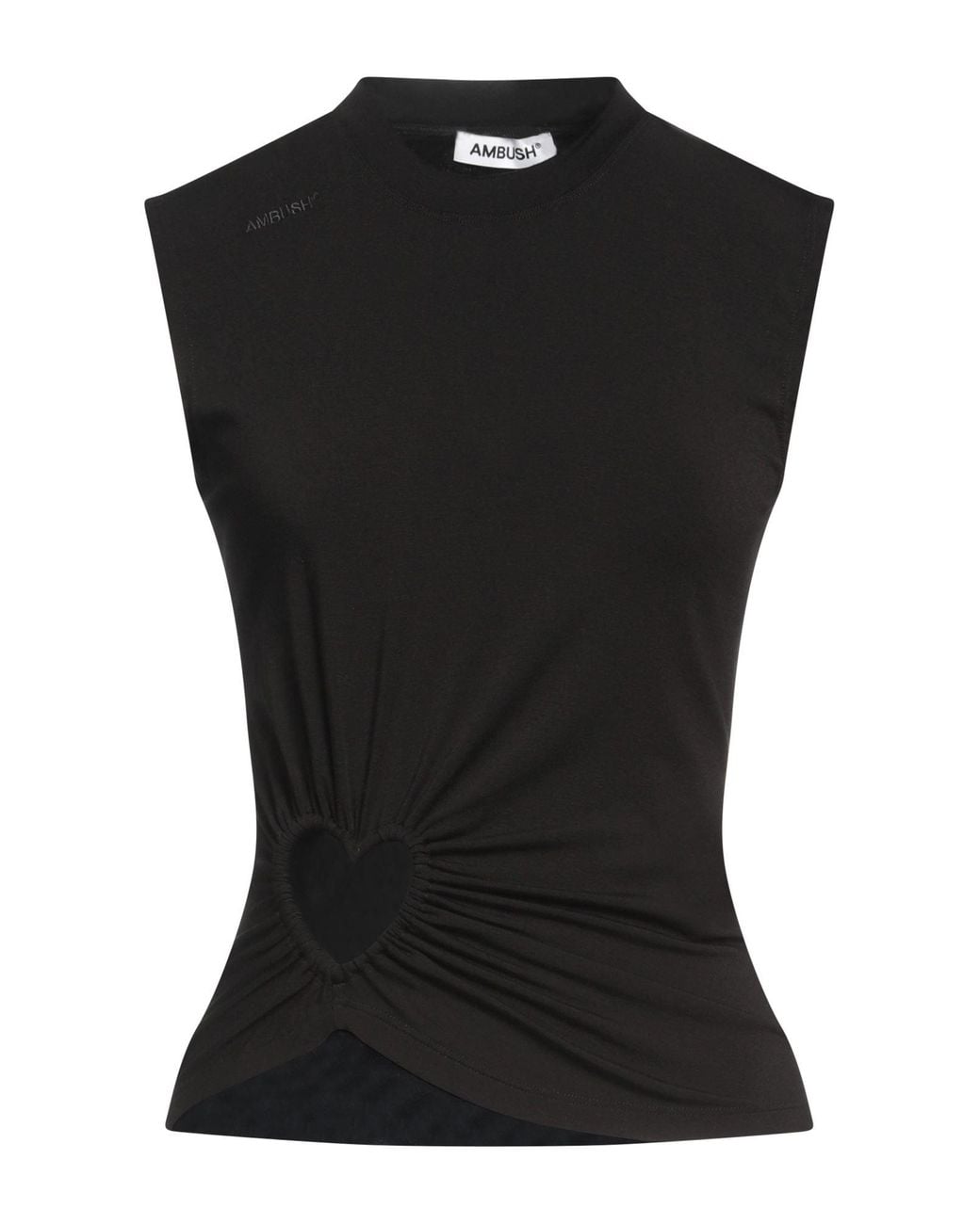 Top, jersey, stretchy fabric, solid color, embroidered logo, crewneck, sleeveless, hand wash or dry clean, do not bleach, do not tumble dry , Color: Black , Size: XS
