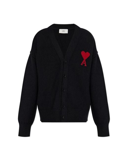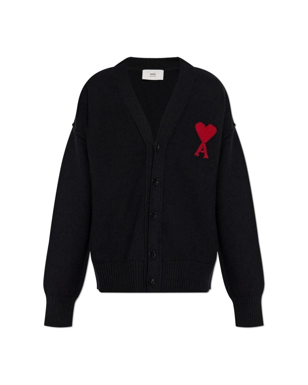 Wool Cardigan With Logo by AMI Alexandre Mattiussi is a versatile piece of Parisian nonchalance that delights with its simplicity and unique detailing. The striking, smooth, black knit of thick virgin wool envelops the silhouette with a comfortable, slightly _oversized_ cut and delicately dropped shoulder line. Classic styling is complemented by wide ribbed cuffs at the sleeves, hem, and button placket, ensuring both durability and a chic accent. The chest of the cardigan features a contrasting, red "A" logo intertwined with a heart—a symbol of timeless style and a tribute to the authenticity of the Parisian brand. The uniqueness of this piece is accentuated by AMI's impeccable craftsmanship and distinctive heritage, seamlessly blending everyday wear with exclusivity. WHY BUY This Product? * Made from exclusive, soft virgin wool for exceptional comfort and durability. * Timeless cut with elements of Parisian ease fits effortlessly into any closet. * The bold brand logo highlights individuality and global prestige. * Elegant ribbed finishes ensure a refined look and comfortable wear. Model`s Measurements Height: 176cm Bust: 85cm Waist: 60cm Hips: 89cm Model`s Measurements Height: 193cm Chest: 95cm Waist: 82cm Model is wearing size: S Color: blue