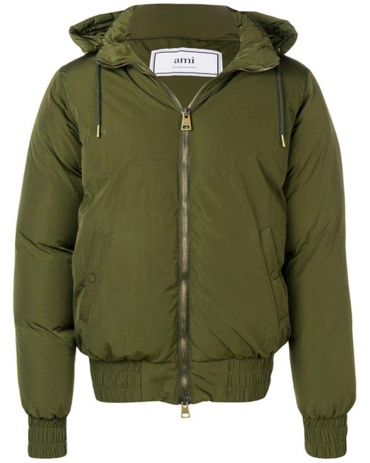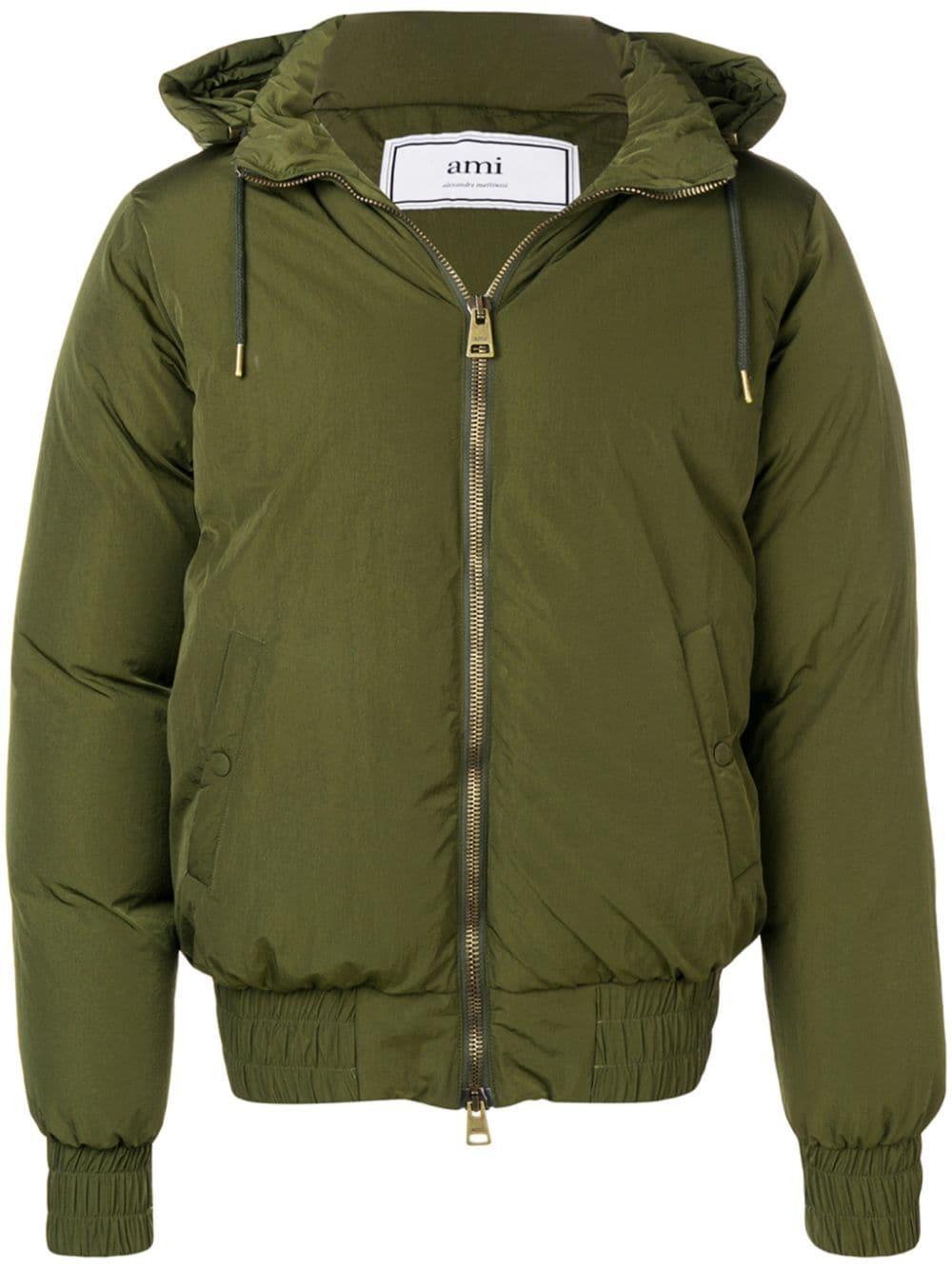 Striking the perfect balance between smart and casual, these hooded down jacket from AMI Paris are sure to become an integral part of your collection. A prime example is this cozy yet elegant green Hooded Down Jacket from AMI's AW19 Collection. Featuring a drawstring hood, a front zip fastening, long sleeves, a ribbed hem and cuffs, front pockets and a padded interior. This item is unisex. Material:Polyamide. This item may not be on sale in France, UK, Italy, Belgium and Switzerland. Color: green
