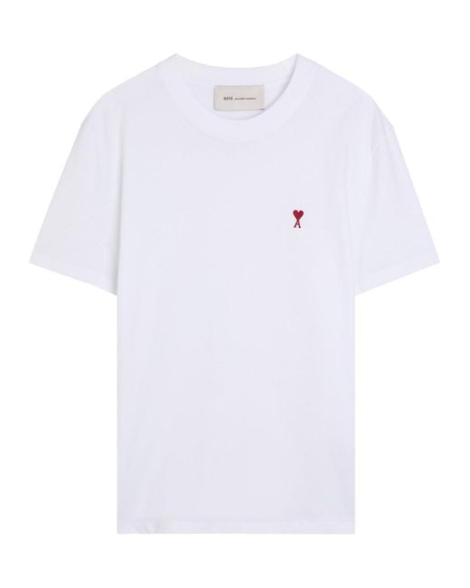 Info & Care AMI Paris cotton T-shirt; Ribbed crew-neck, embroidered Ami de Coeur logo at chest, logo embroidery at back; Slips on; 100% organic cotton; Machine wash; Size & Fit Length shoulder to hem: 27 inches/ 68.5cm; Midweight; Regular fit; Model is 6'2""/ 188cm, chest size 38 inches and wears a size medium Color: white