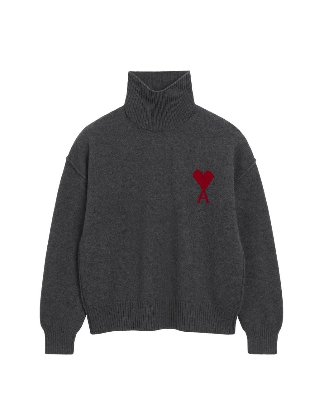Heather grey roll-neck intarsia heart motif inside-out seams Size: XXS. Gender: Unisex. Material:Wool.