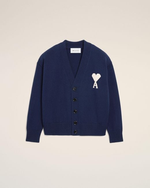 Product from a brand featuring a red heart logo with the letter A. Cardigan in wool cotton knit. Unisex product