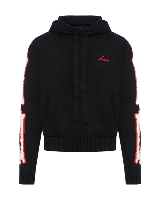 Men's Black Logo Embroidered Drawstring Knitted Hoodie