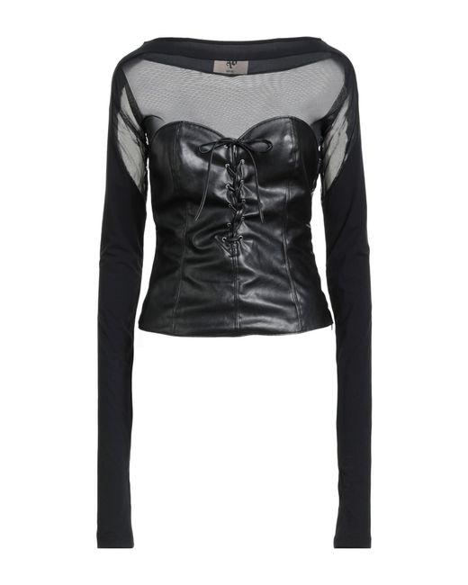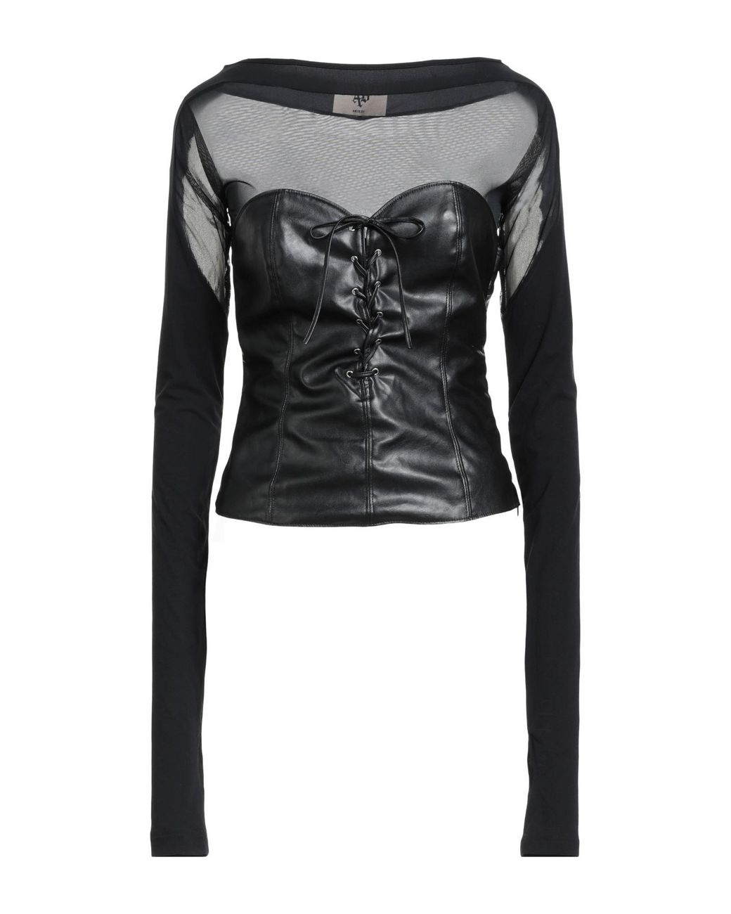 Top, coated fabric, tulle, solid color, brand logo, crewneck, long sleeves, zipper fastening, hand wash, do not bleach, do not tumble dry , Color: Black , Size: XS