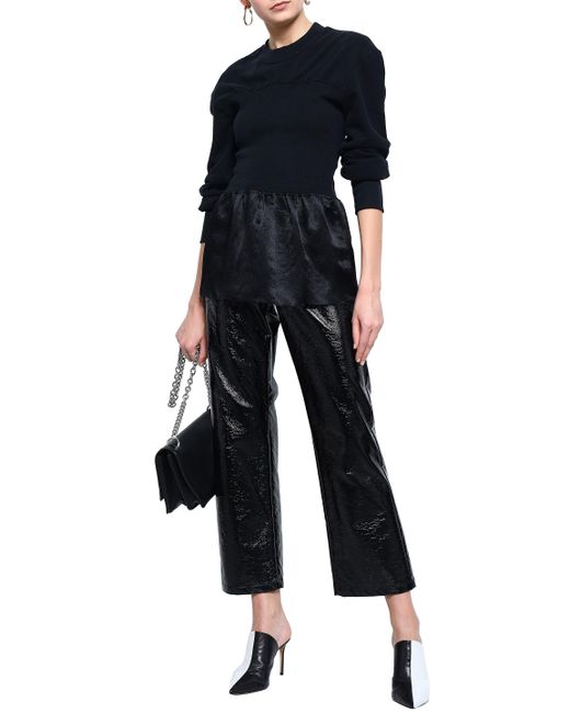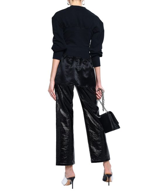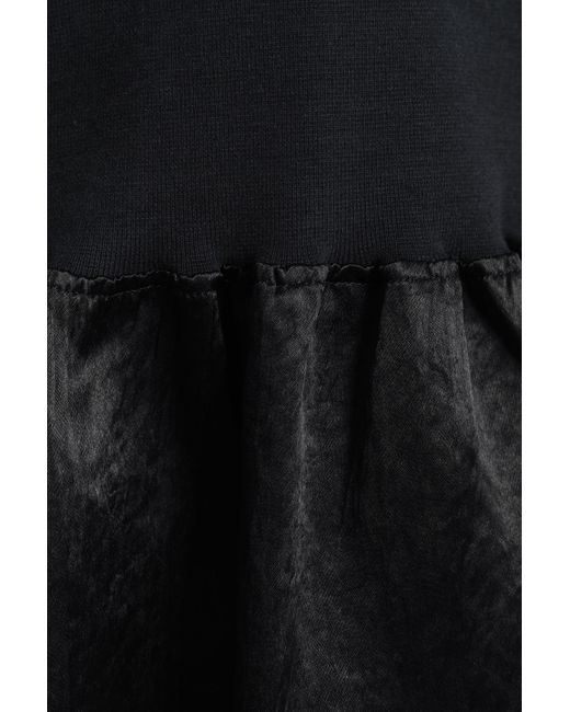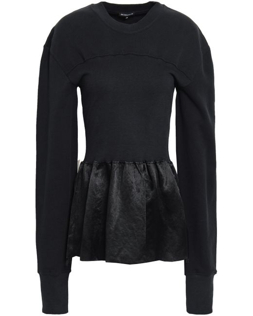 Women's Crinkled Satin-paneled French Cotton-terry Sweatshirt Black