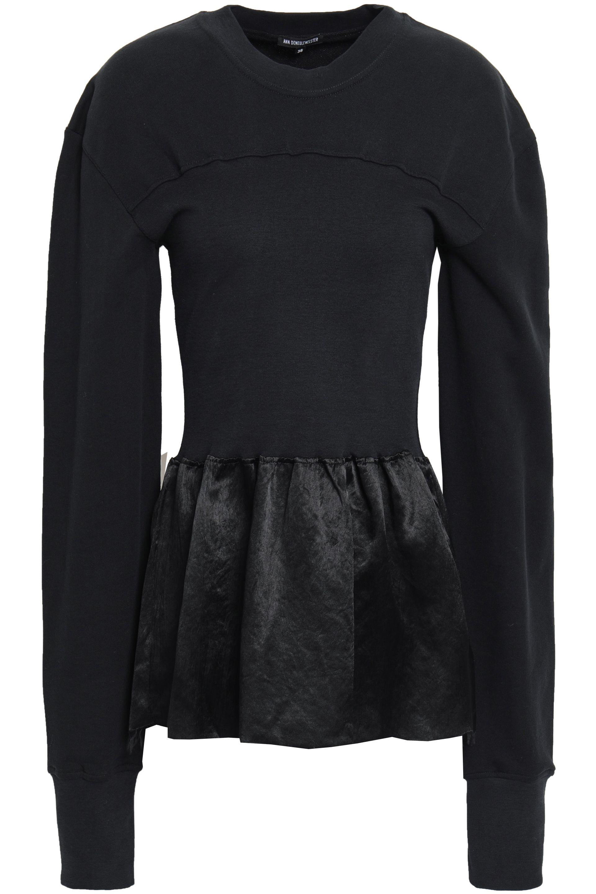 Sweatshirt Satin French cotton-terry Paneled Raw-cut trims Gathered Slips on Flared hem Mid-weight fabric Dry clean. Imported Crinkled. Cotton 100%. Color: black