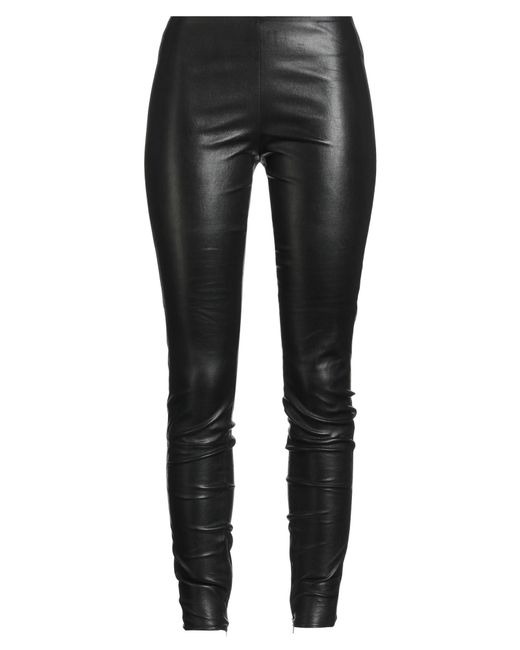 Skinny pants, leather, solid color, no appliqués, mid rise, slim fit, zipper fastening, zips at hem, hand wash or dry clean, do not bleach, do not tumble dry, contains non-textile parts of animal origin , Color: Black , Size: 6