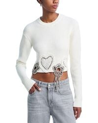 Go to NordstromCrocheted hearts and crystal flowers add the NYC-based label's signature eclectic-glam aesthetic to this cropped sweater knit in a rib stitch from cotton-blend yarn. Color: natural