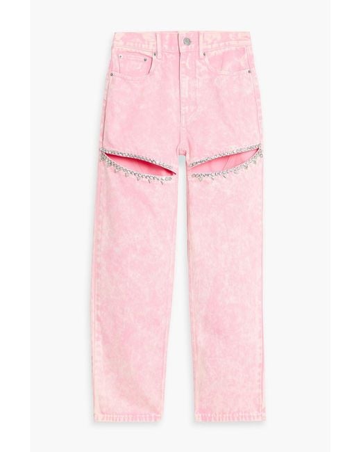 - Cutout Crystal-Embellished High-Rise Straight-Leg Jeans