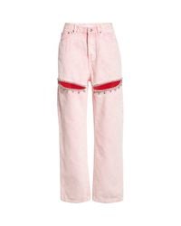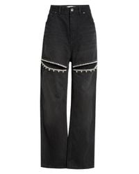 Go to NordstromArea's cult-favorite thigh-slit jeans move the signature crystals to drape from the side as a removable cup chain, while a heart seam arches across the back. The straight-leg silhouette is cut from nonstretch