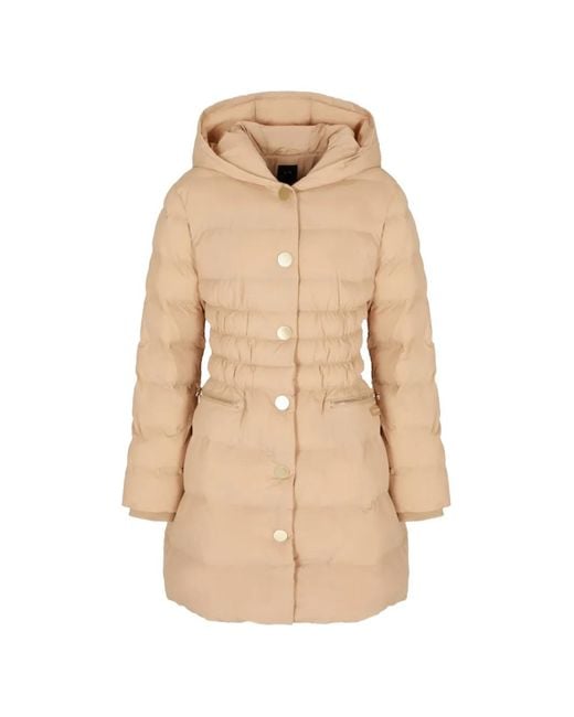 Beige hooded button fastening elasticated detail zip detail quilted Size: S. Gender: Female. Material:Polyamide. Color: natural