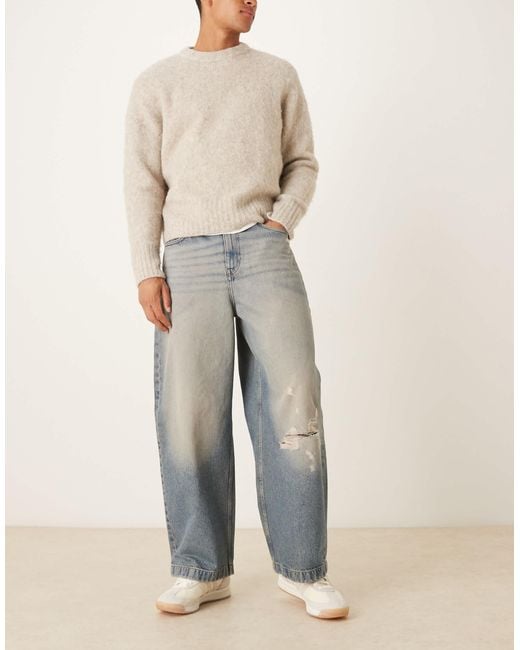 Jeans by ASOS DESIGN Barrel fit Belt loops Distressed finish on legs Functional pockets.